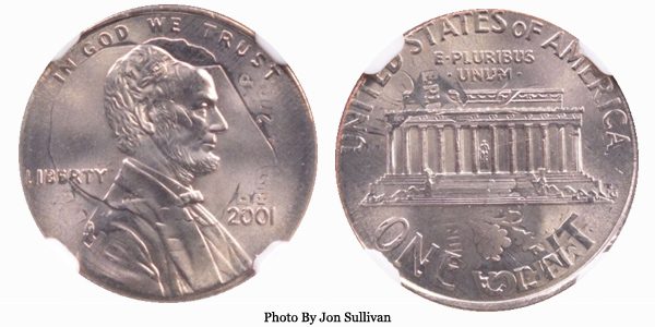 2001 Lincoln Cent on Dime