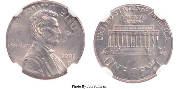 2001-D Lincoln Cent on Dime