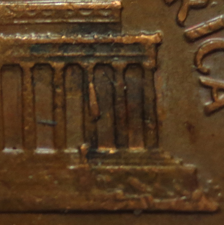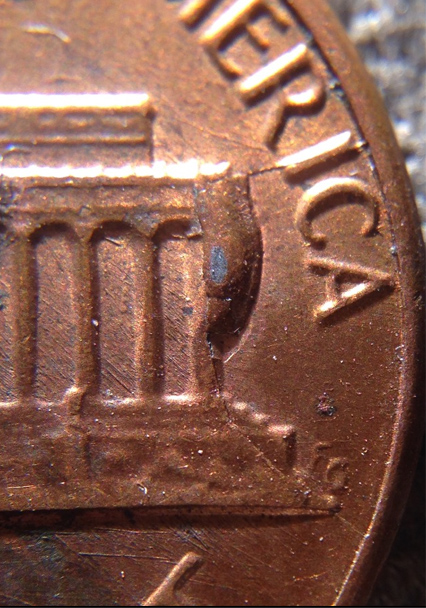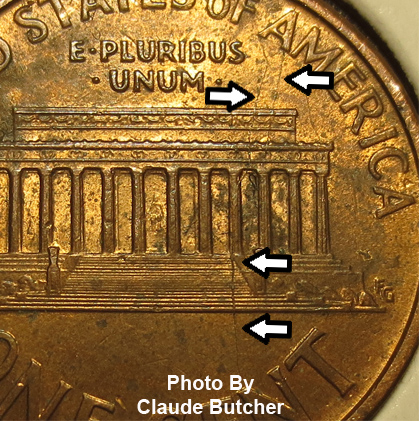 Die cracks can happen anywhere on a die but will usually happen in places where the die is weakest, like the corners of the Lincoln Memorial on the reverse side of Memorial cents, or the head of Lincoln's profile.