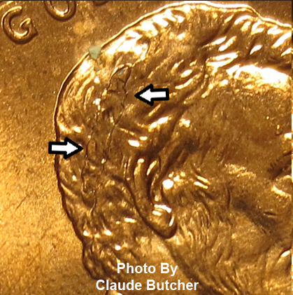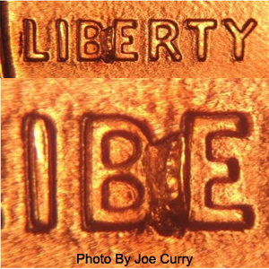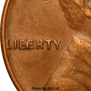 One of the most common places for a die to break is the thin area between the "B" and "E" of LIBERTY. These are known by collectors as "BIE" Cents. There are well over 1000 different types of BIE errors, most occurring in the 1950's.