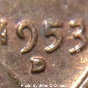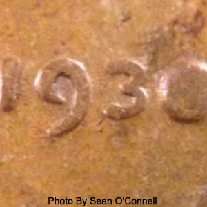 Another common area to see small die breaks is the inside of the numbers on the date.