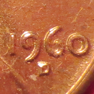 Another way to tell the difference between the 1960 large and small dates, is to look at the inside loops of the 6 and 9. The engraving on the master die looks like the photo below.