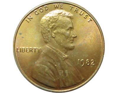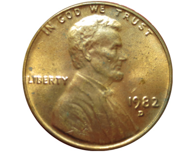 In 1982 the mint made seven business strike varieties of the Lincoln cent. They are the 1982 large date Copper, 1982 large date Copper plated Zinc, 1982 small date Copper, 1982 small date Copper plated Zinc, 1982 D large date Copper, 1982 D large date Copper plated Zinc, and the 1982 D small date Copper plated Zinc. They also produced a 1982-S large date copper Proof cent.