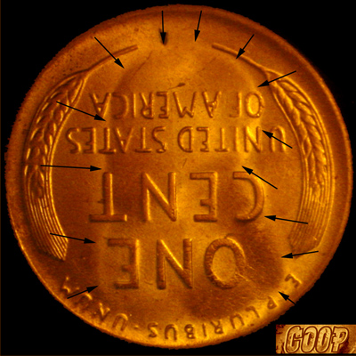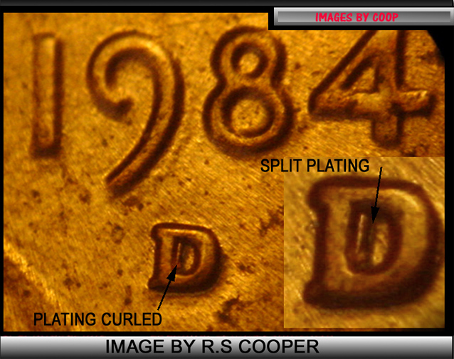 Split plating occurs on some devices facing the rims on Zinc cents.